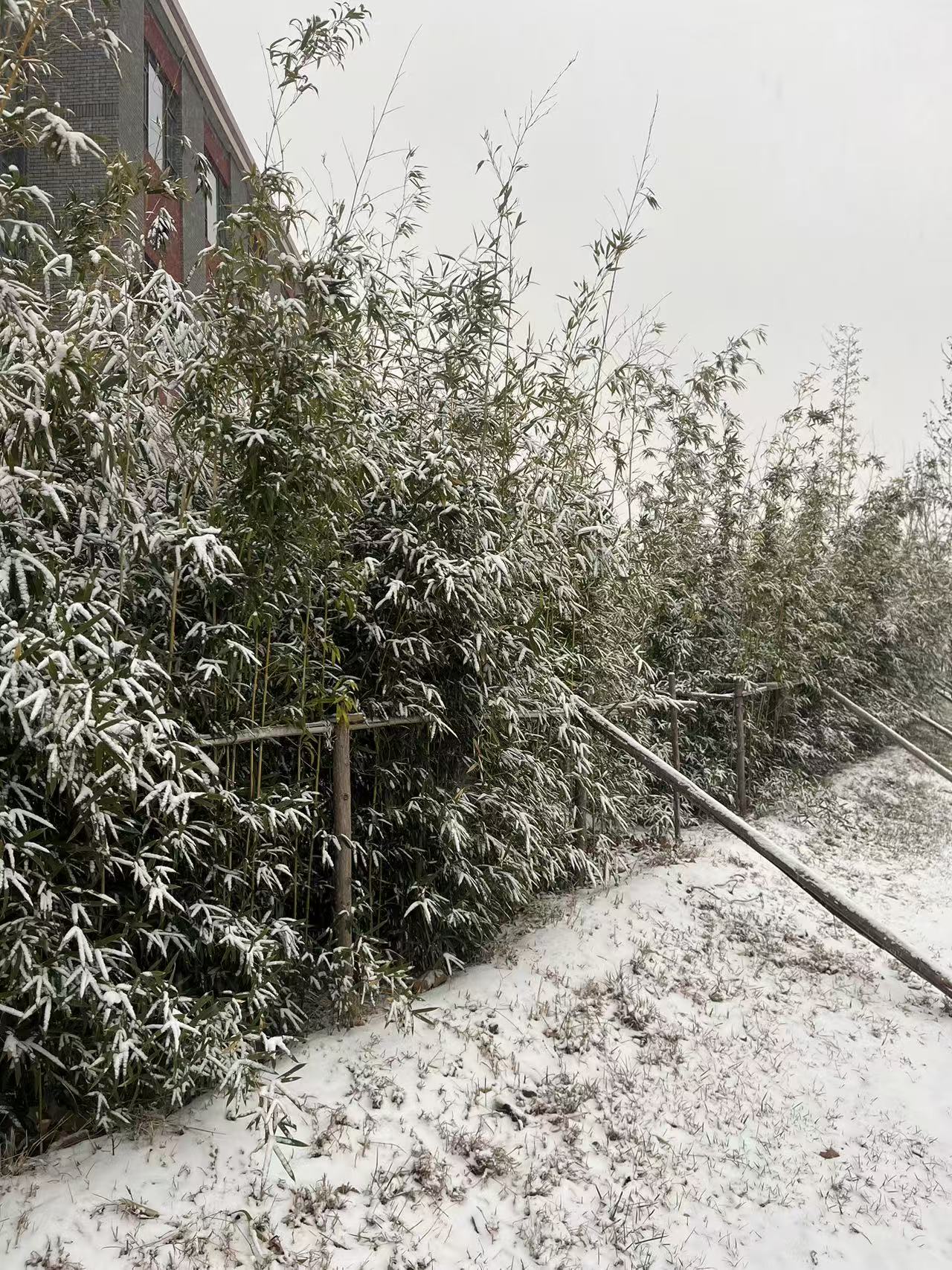 写完字后我来到了操场——果不其然有很多人,大家三三两两站在四处,有的在拍照,有的在玩雪。我和勒哥还有肖哥约好在操场碰面,大家一起玩耍、拍照。是的,我们宿舍只有三个南方人,我来自广东,勒哥来自四川,肖哥来自贵州,见了「大雪」都激动不已,只有在内蒙长大的硕哥来自北方并对此无动于衷。