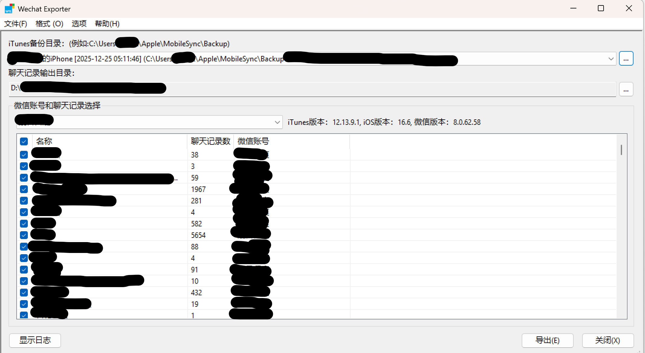 最后,我通过使用 iTunes 在 Windows 备份 iphone 数据,随后使用 WechatExporter 项目中提供的应用程序才完成聊天记录的导出。